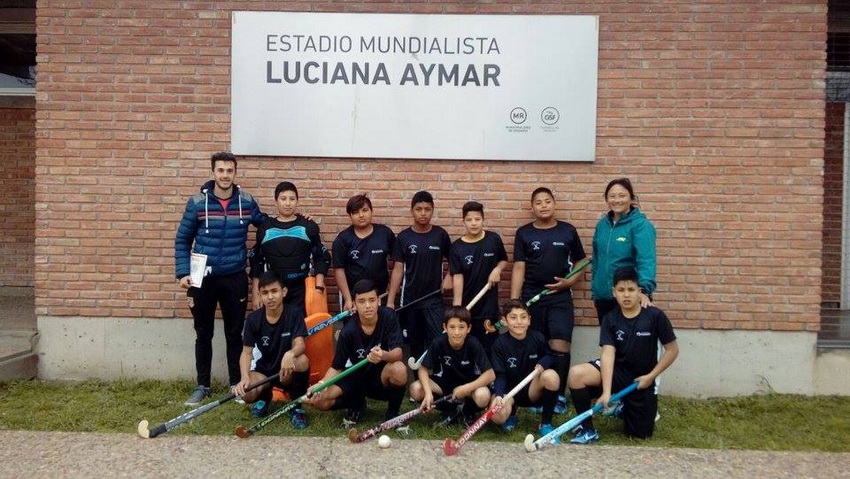 Foto: El equipo de Hockey Sub 14 en el estadio mundialista “Luciana Aymar” de Rosario