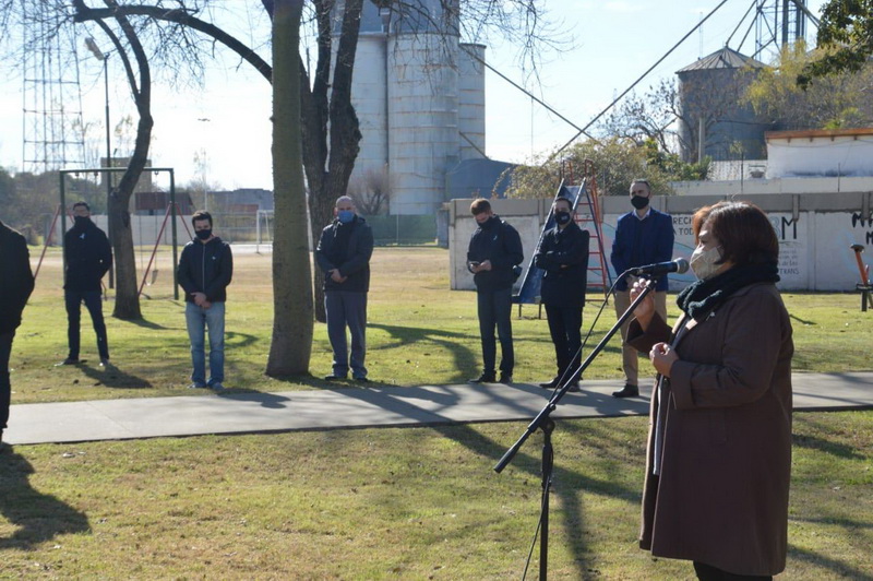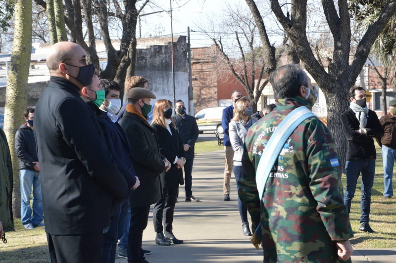 Participaron del acto representantes de los centros de veteranos de Malvinas con asiento en la ciudad, el intendente Chiarella y parte de su gabinete, el senador Lisandro Enrico, el presidente del Concejo Deliberante y los ediles Santiago Meardi, Mariana Iturbide, Darío Jeannot y Emilce Cufré, además de integrantes de la Comisión Vecinal del barrio San Martín.