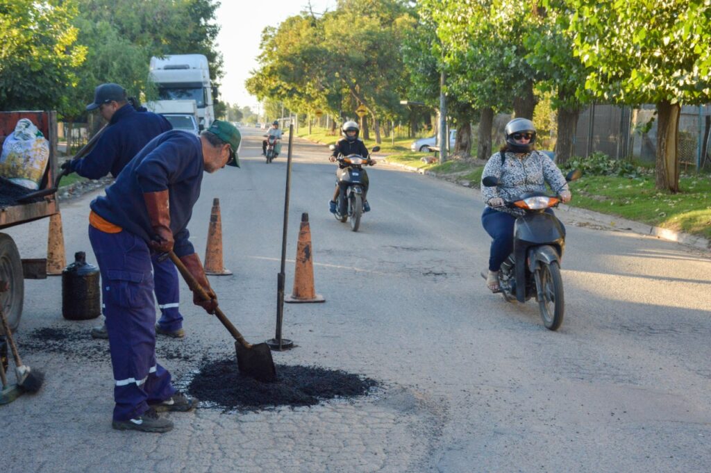 Los equipos municipales también trabajan en el bacheo con material asfáltico frío en Eva Perón, entre Gobernador Begnis y Rivadavia; construcción de rampas de accesibilidad en plaza Dr. Escribano; y desmolde de cordones cuneta en calle Catamarca, entre Giacaglia y Roberto Cavanagh.