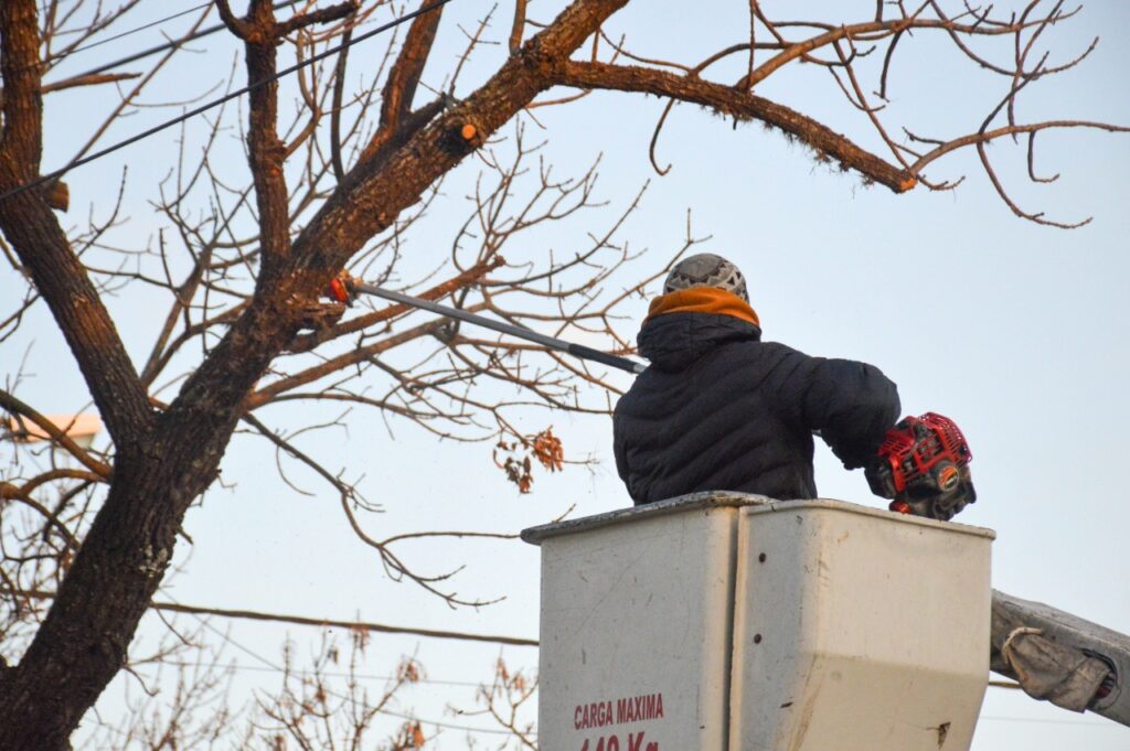 La Dirección de Espacios Públicos realiza poda con hidroelevadores en Urquiza y Güemes (por calle Urquiza) e Islas Malvinas al 800, y poda a pie en Vuelta de Obligado y Los Andes, y en veredas del colegio Nacional II.