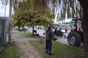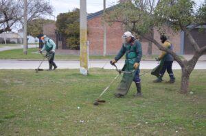 También se realiza desmalezado con motoguadañas en el predio de Sociedad Rural y otras instituciones; y el barrido manual recorre las calles del Microcentro y Centro II.