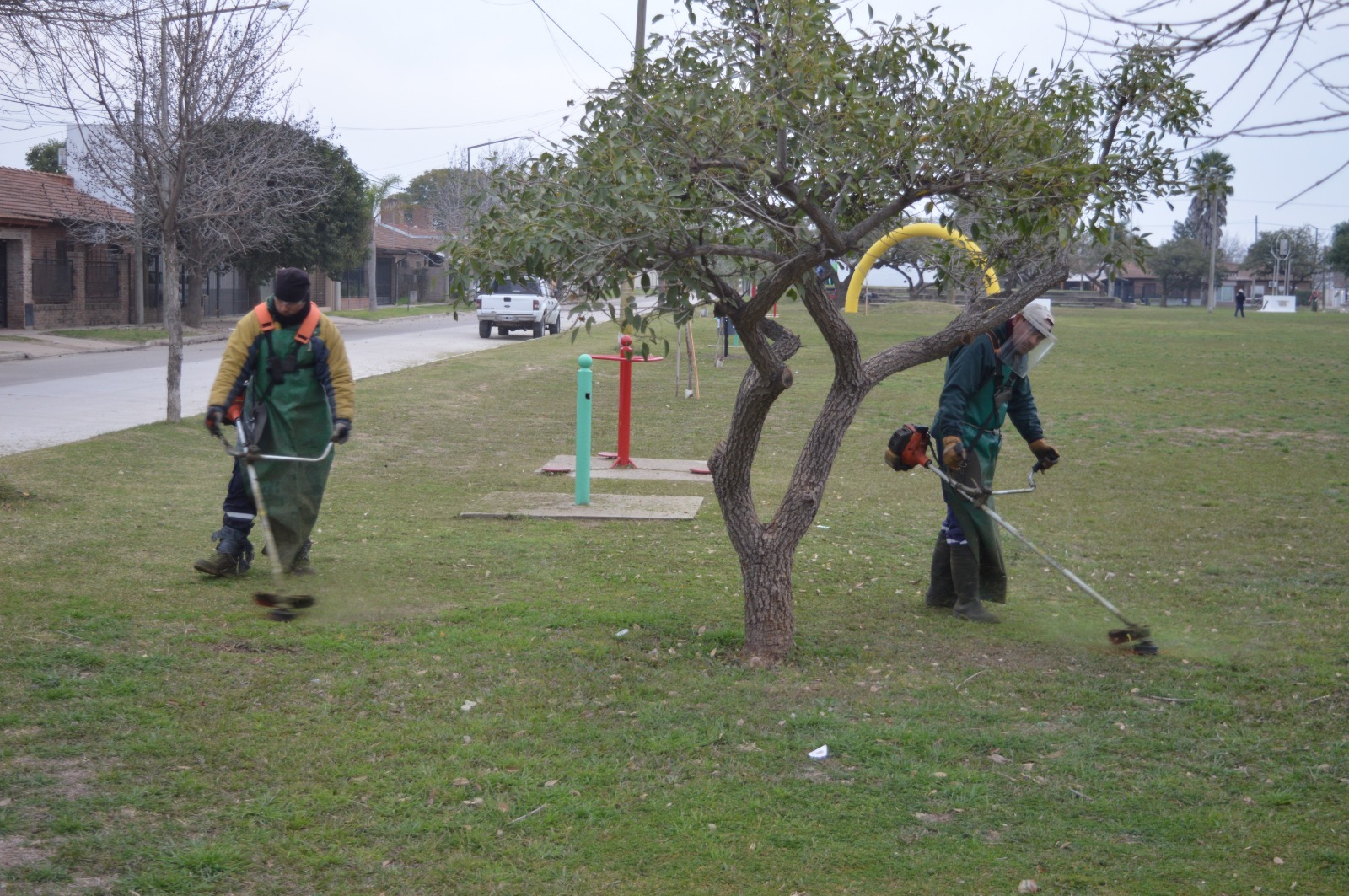También se realiza desmalezado con motoguadañas en el predio de Sociedad Rural y otras instituciones; y el barrido manual recorre las calles del Microcentro y Centro II.