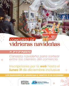 EL Gobierno de Venado Tuerto y el Centro Comercial, Industrial y Servicios (CCIS) lanzaron el concurso promocional “Vidrieras Navideñas”, que apunta a premiar a los comerciantes que embellezcan las vidrieras de sus locales con motivo de las Fiestas de fin de año.