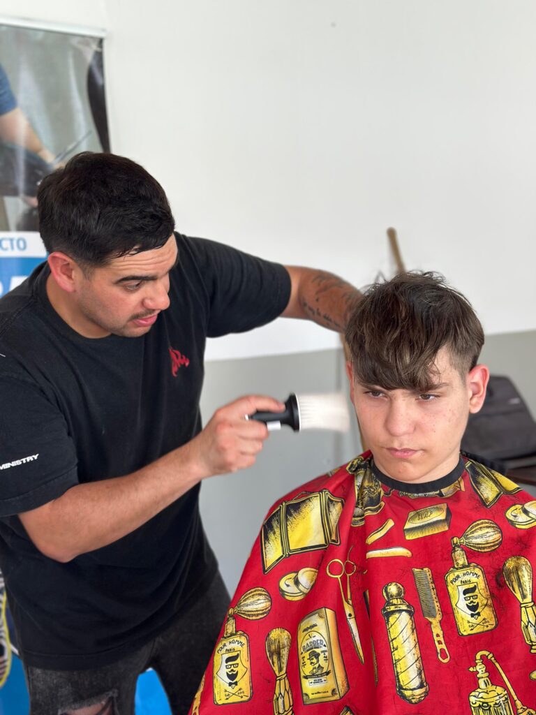 El servicio de corte de cabello coordinado por la Dirección de Vecinales fue aprovechado por 17 vecinos y vecinas de distintas edades, atendidos en forma gratuita en el espacio comunitario de 26 de Abril 835.