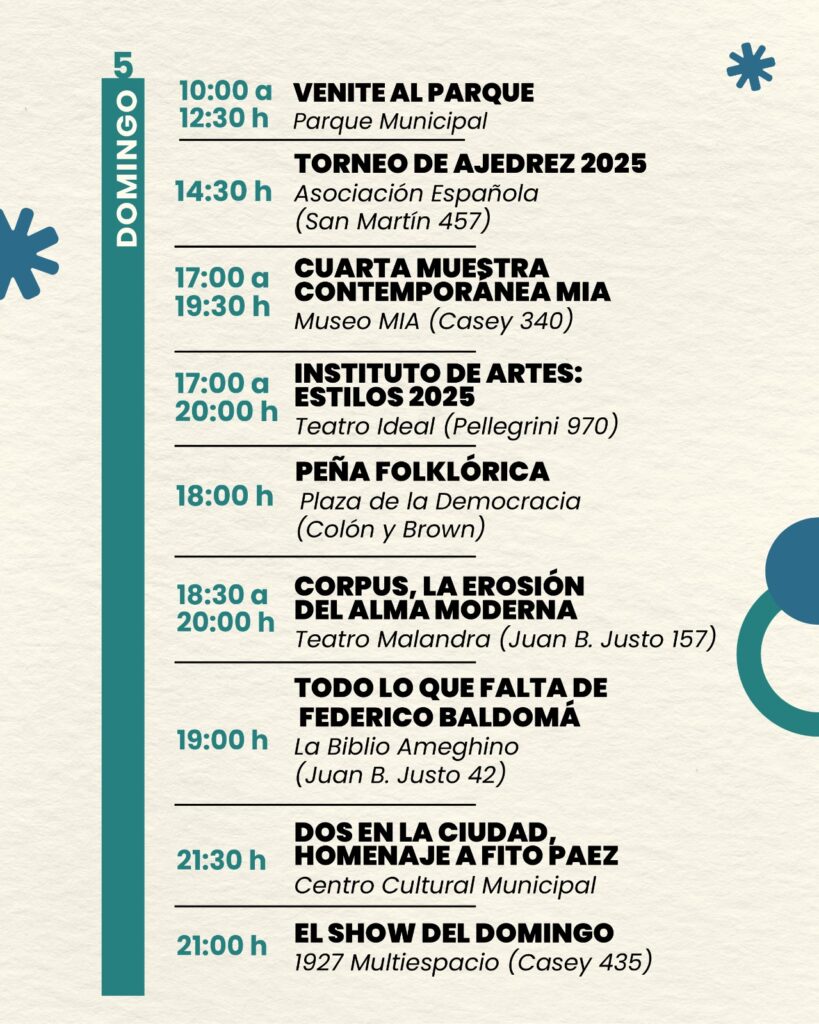 En el anfiteatro de plaza Italia (Av. Dr. Luis Chapuis y Piacenza), este sábado se brindará el espectáculo Ruge 2025. Con entrada libre y gratuita, a partir de las 18, actuarán “Los Descalzados” y “A precio de sangre, cumbia que adora”.