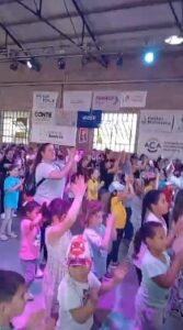 El sábado 4 de octubre, unos 120 niños y niñas que asisten a la Colonia Municipal de Invierno “Un Mundo por Descubrir”, dependiente de la Dirección de Deportes, se sumaron a otra nueva edición de la Maratón de Ritmos que organizó la profesora y bailarina Carolina Díaz a beneficio del Hogar Pablo VI, en la Sociedad Rural de Venado Tuerto.