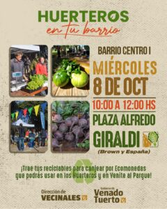 La propuesta semanal del Gobierno de Venado Tuerto también incluirá un punto de intercambio de residuos reciclables por ecomonedas que podrán ser utilizadas en las ferias municipales “Huerteros en tu Barrio” y “Venite al Parque”.