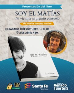 El sábado 11 de octubre, Matías Peralta Proske presenta su libro «Soy el Matías: ni victima ni premio consuelo”, que escribió junto a su madre adoptiva, Erika Pasero Proske.