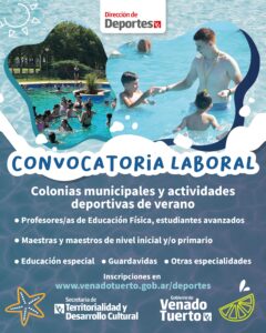 La Secretaría de Territorialidad y Desarrollo Cultural, a través de la Dirección de Deportes, convoca a profesores y profesoras de Educación Física, estudiantes avanzados, maestras y maestros de nivel inicial, primario, educación especial, guardavidas y otras especialidades a inscribirse para participar en las Colonias Municipales 2026.