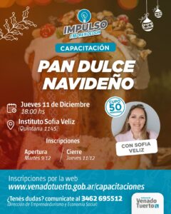 El Programa Impulso Emprendedor, de la Secretaría de Desarrollo Productivo, convoca a una nueva capacitación gratuita para aprender a preparar otra receta para las Fiestas.