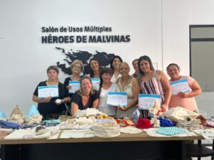 Mujeres de los barrios Juan XXIII y Rivadavia que se capacitaron en costura y manualidades recibieron ayer sus certificados en un encuentro de cierre anual celebrado en el SUM “Héroes de Malvinas”.