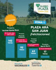 – Plaza ARA San Juan- Nombre: Vecinal Santa Rosa (142 votos)