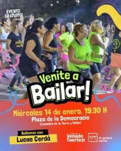 La propuesta de la Secretaría de Territorialidad y Desarrollo Cultural “Venite a Bailar” comenzará una nueva etapa este miércoles 14 de enero en la plaza de la Democracia (Lisandro de la Torre y Brown).