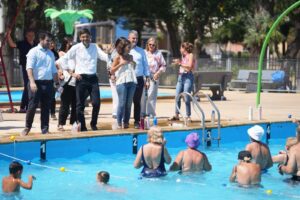 Además de las obras viales, el gobernador visitó la Colonia Municipal de Adultos de verano, donde compartió una actividad recreativa con los asistentes, y recorrió las instalaciones del Centro de Educación Física N° 54.
