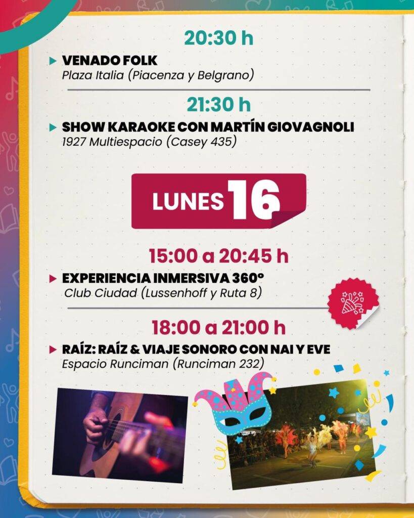 El cierre del domingo será en 1927 Multiespacio (Casey 435), con el show y karaoke de Martín Giovagnoli. La cita es a las 21.30.