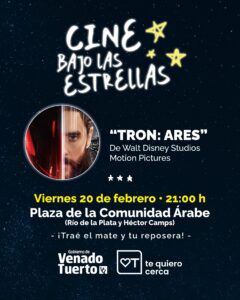 La agenda cultural de verano en la ciudad no detiene su marcha y suma un nuevo capítulo de su exitoso ciclo “Cine bajo las Estrellas”, organizado por la Subsecretaría de Vecinales y la Dirección de Juventudes. En esta oportunidad, los vecinos podrán disfrutar de la película «Tron: Ares», de Walt Disney Studios Motion Pictures, en un entorno pensado para el disfrute familiar.