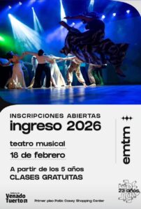 También abrió las inscripciones 2026 con un programa pensado para niños y jóvenes de 5 años en adelante. Las clases ofrecen una formación integral que combina danza, canto y actuación para el desarrollo artístico en todas las edades.