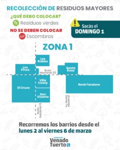 El Gobierno de Venado Tuerto, a través de la Secretaría de Servicios y Obras Públicas, informa el esquema de recolección de residuos verdes que se implementará del lunes 2 al viernes 6 de marzo.