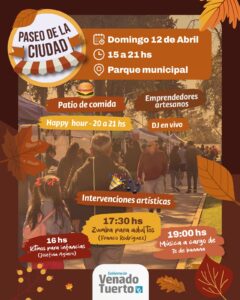 Este domingo 12 de abril, el Parque Municipal General Belgrano se vestirá de fiesta para recibir a una nueva edición del Paseo de la Ciudad. Organizado por el Gobierno de Venado Tuerto, a través de la Secretaría de Desarrollo Productivo, el evento promete una jornada llena de actividades para toda la familia entre las 15 y las 21.