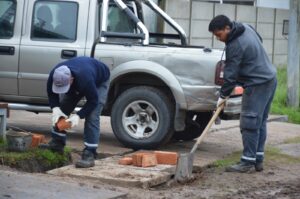 Paralelamente se efectúan tareas de moldeo de cordones para pavimento en Natalio Perillo, entre Comandante Espora y Patricio Kirk, y de cordones para cordón cuneta en Moreno, entre Huhn y Manzano; y se procede al arreglo de cordones en plaza San Martín.