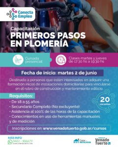 El Gobierno de Venado Tuerto, a través del programa Conecta Empleo de la Secretaría de Desarrollo Productivo, lanza una formación inicial en instalaciones domiciliarias. El curso comienza el 2 de junio y las vacantes son limitadas.