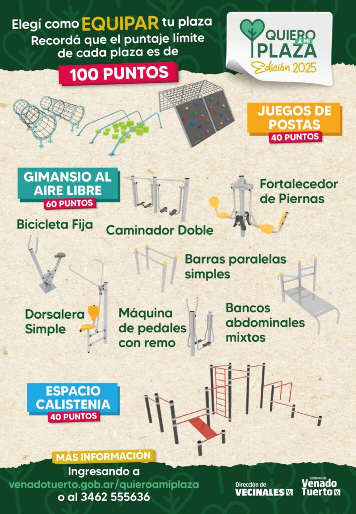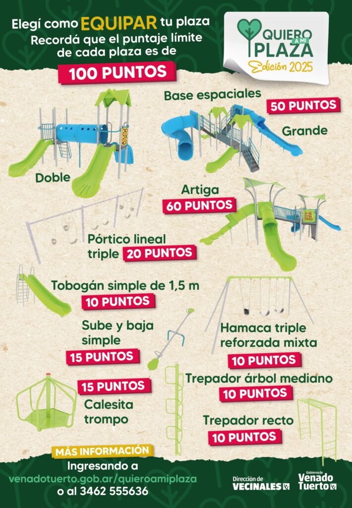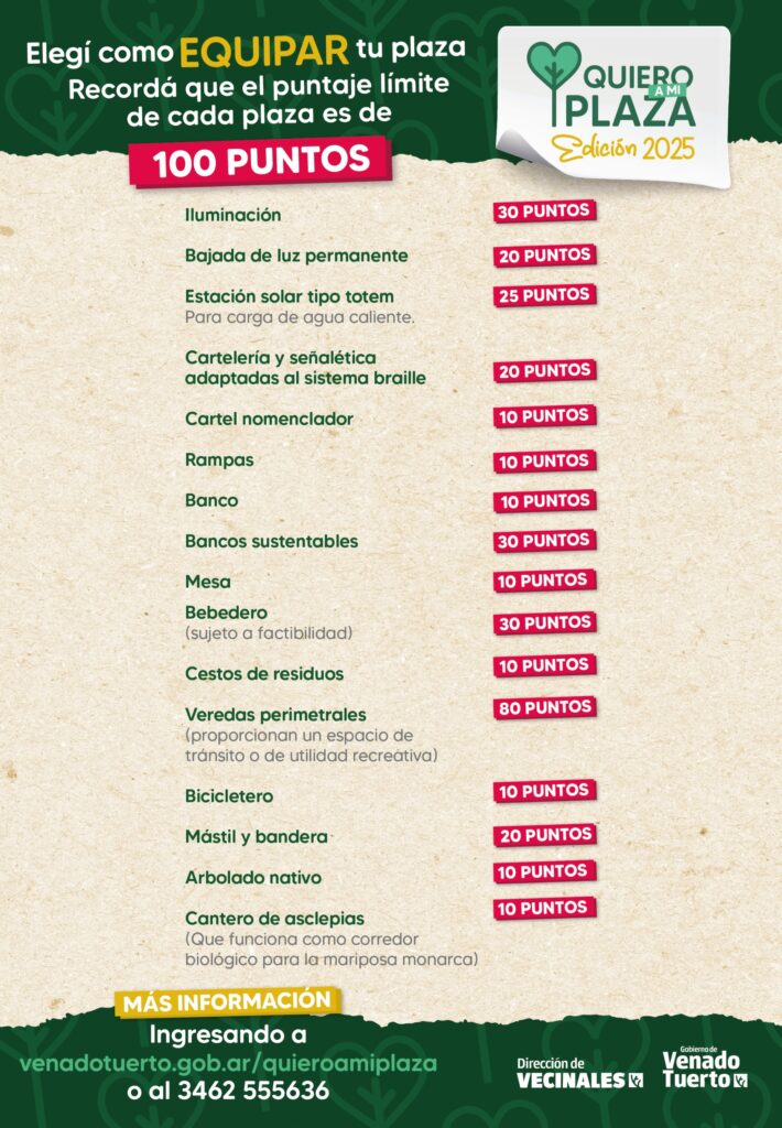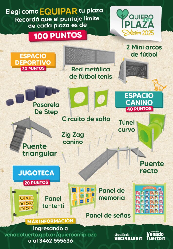 Recordá que podés combinar equipamiento / infraestructura / arbolado hasta llegar a un máximo de 100 puntos.